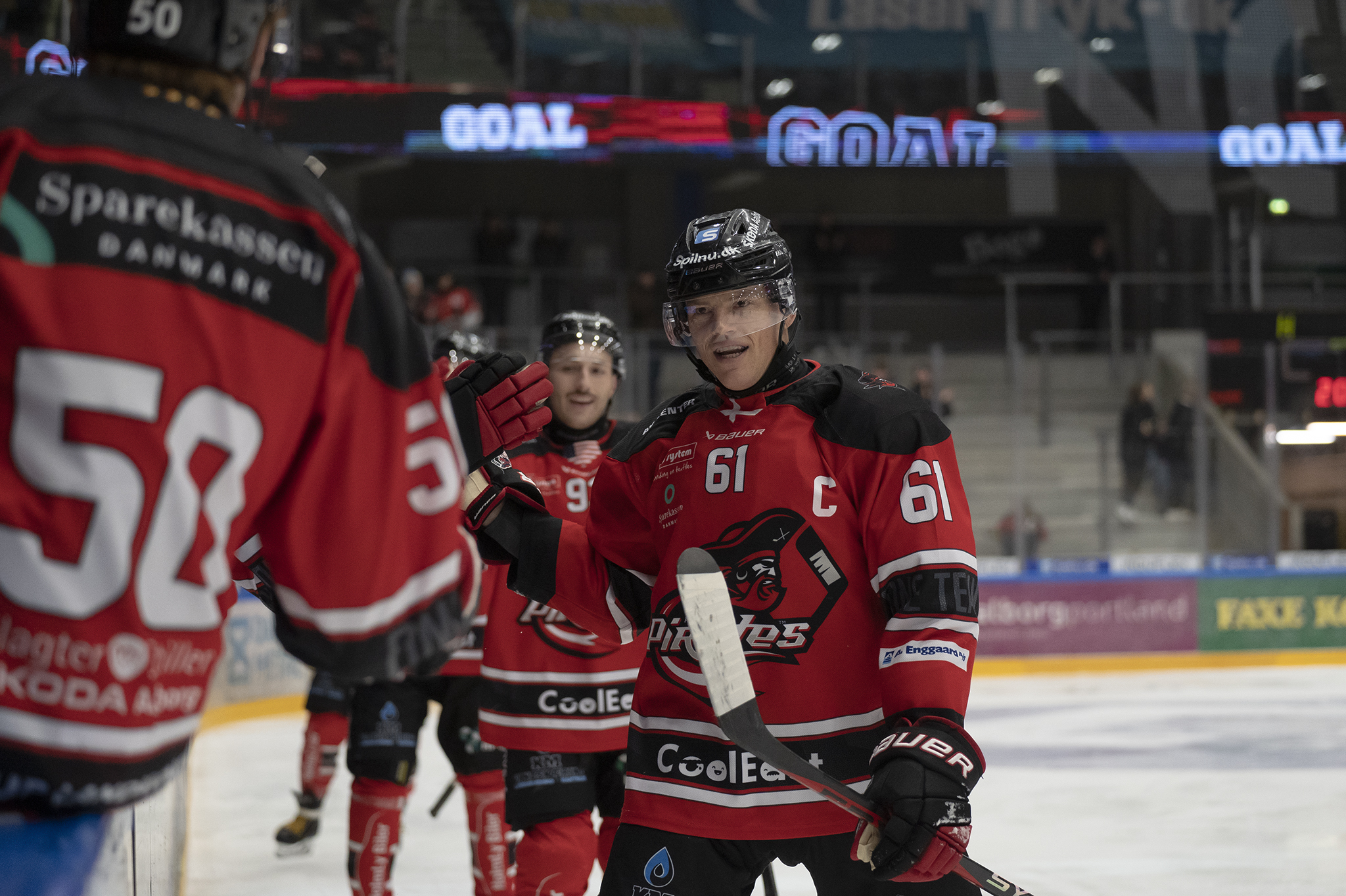 Spillet forsatte med at bølge frem og tilbage, og ingen af holdene kunne få kontrol med kampen. I begge ender var der store chancer, og det var ren hawaiihockey i første periode. Kun i overtal fik piraterne etablerede et regulært angreb. Spillet flød til noget nær perfektion i overtalspillet for hjemmeholdet, og kun en skarp Mathias Seldrup forhindrede en scoring fra Julian Jakobsen og Matt Salhany undervejs.